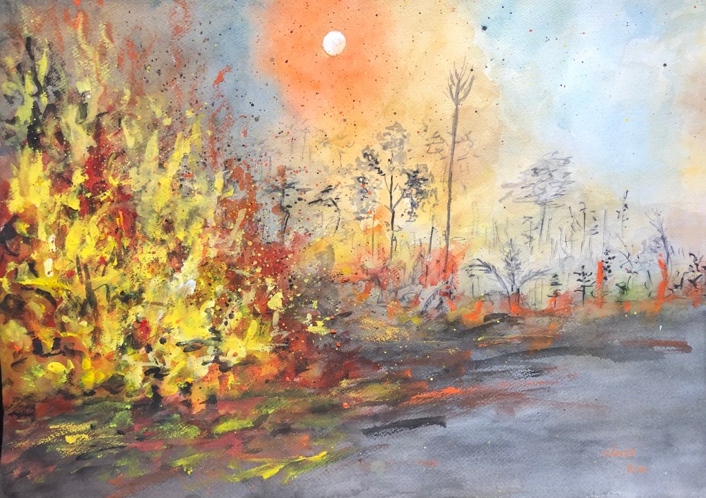 Aquarelle 36 x 51 cm – 2022 – Amazonie en flammes