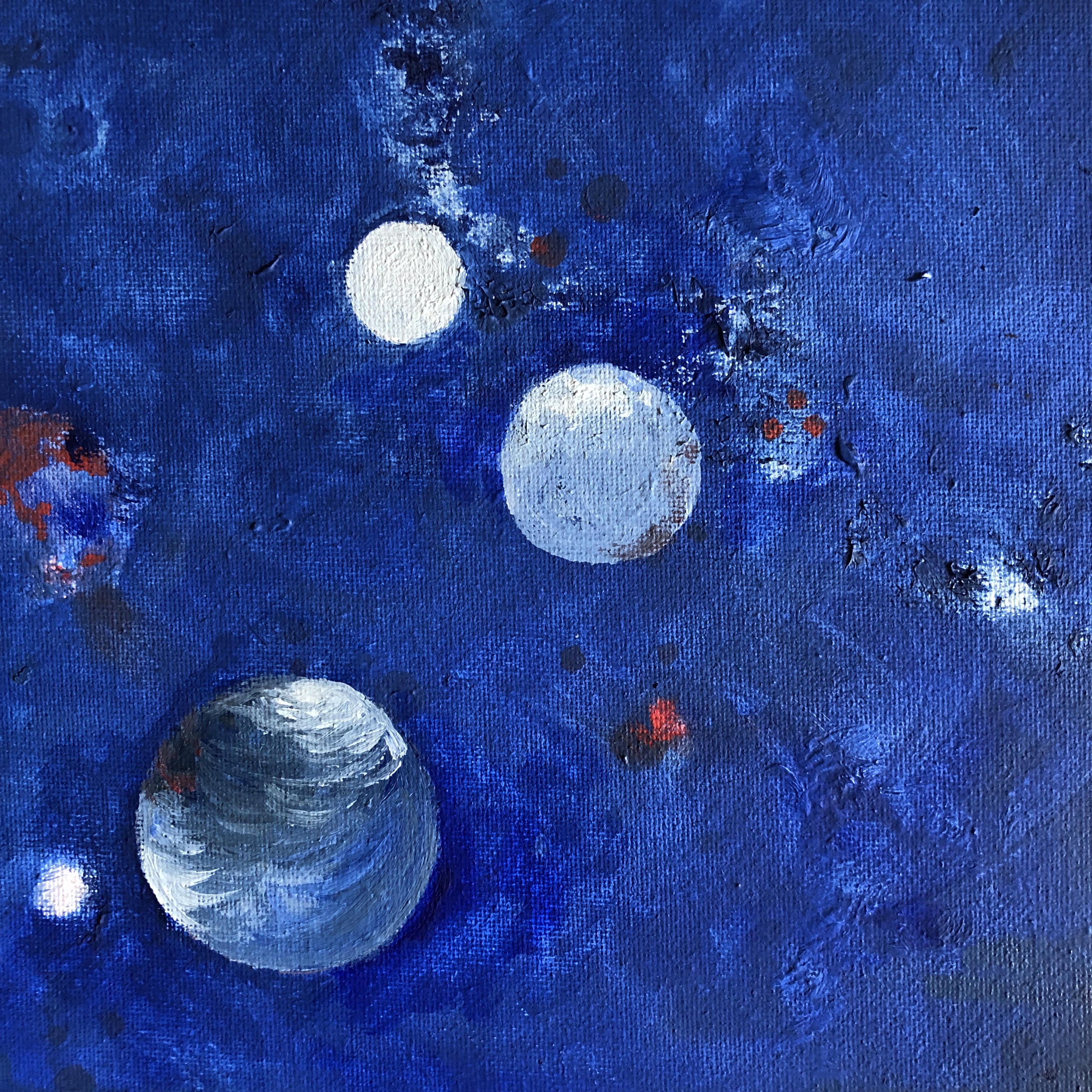 planètes bleu blanc – huile 20 x 20 – 2023