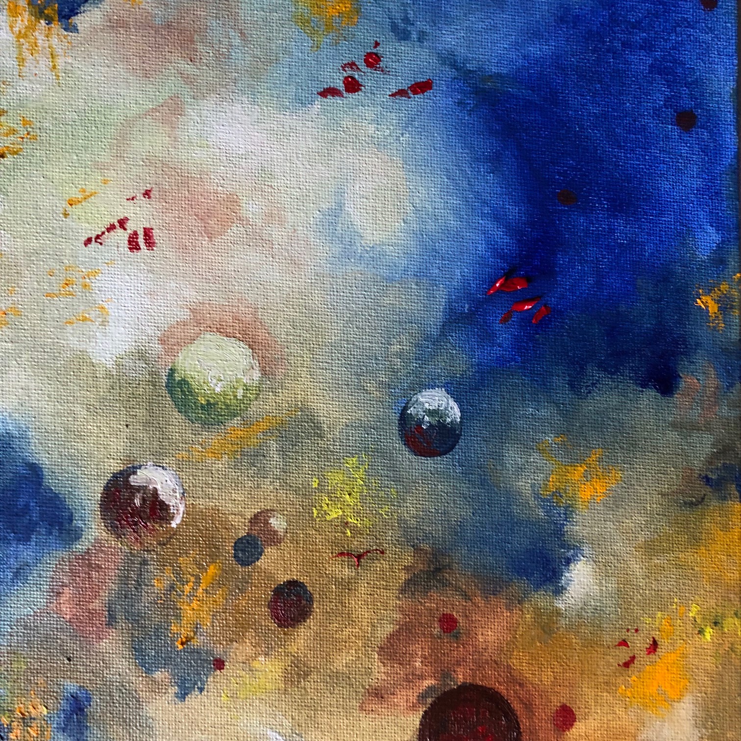 planètes bleu gris et ocre – huile 20 x 20 – 2023