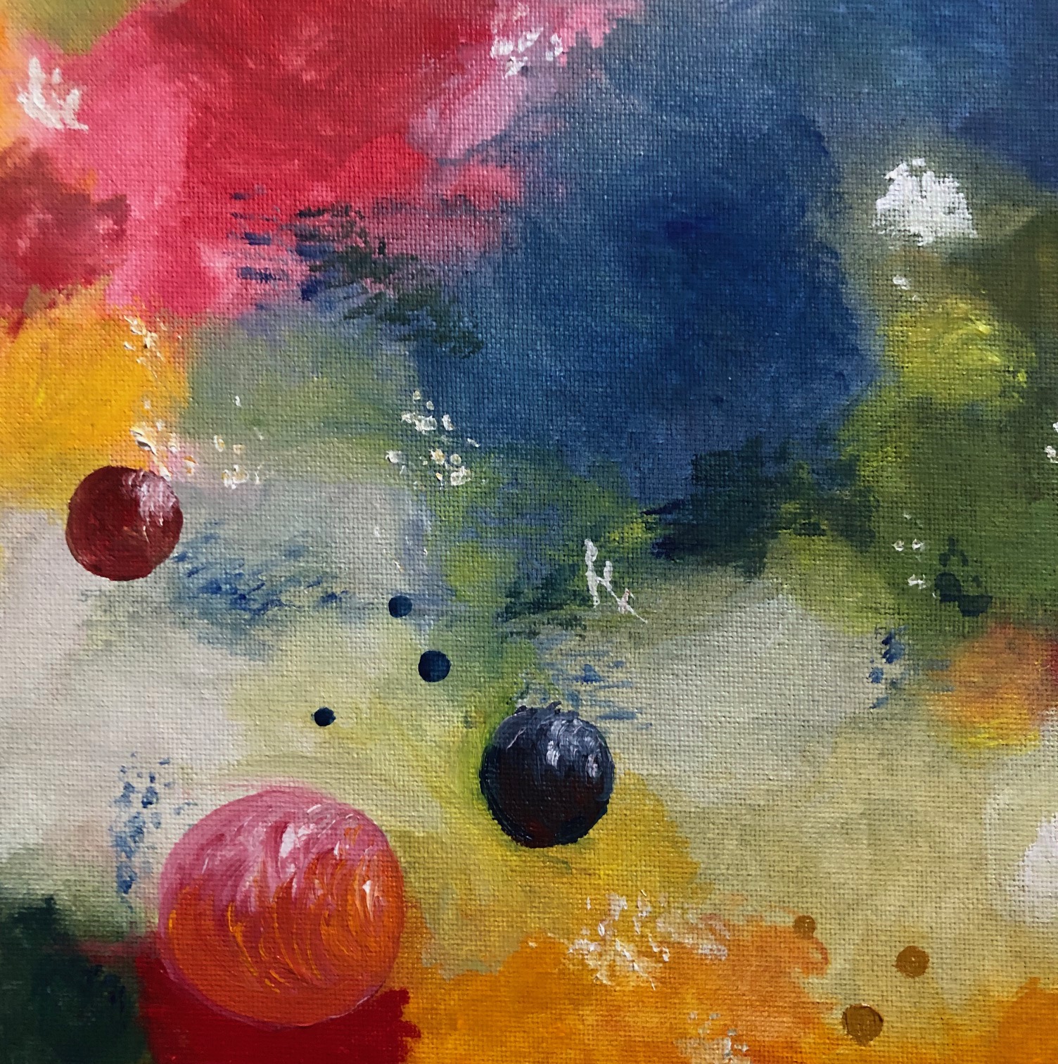 planètes rose rouge et bleu – huile 20 x 20 – 2023