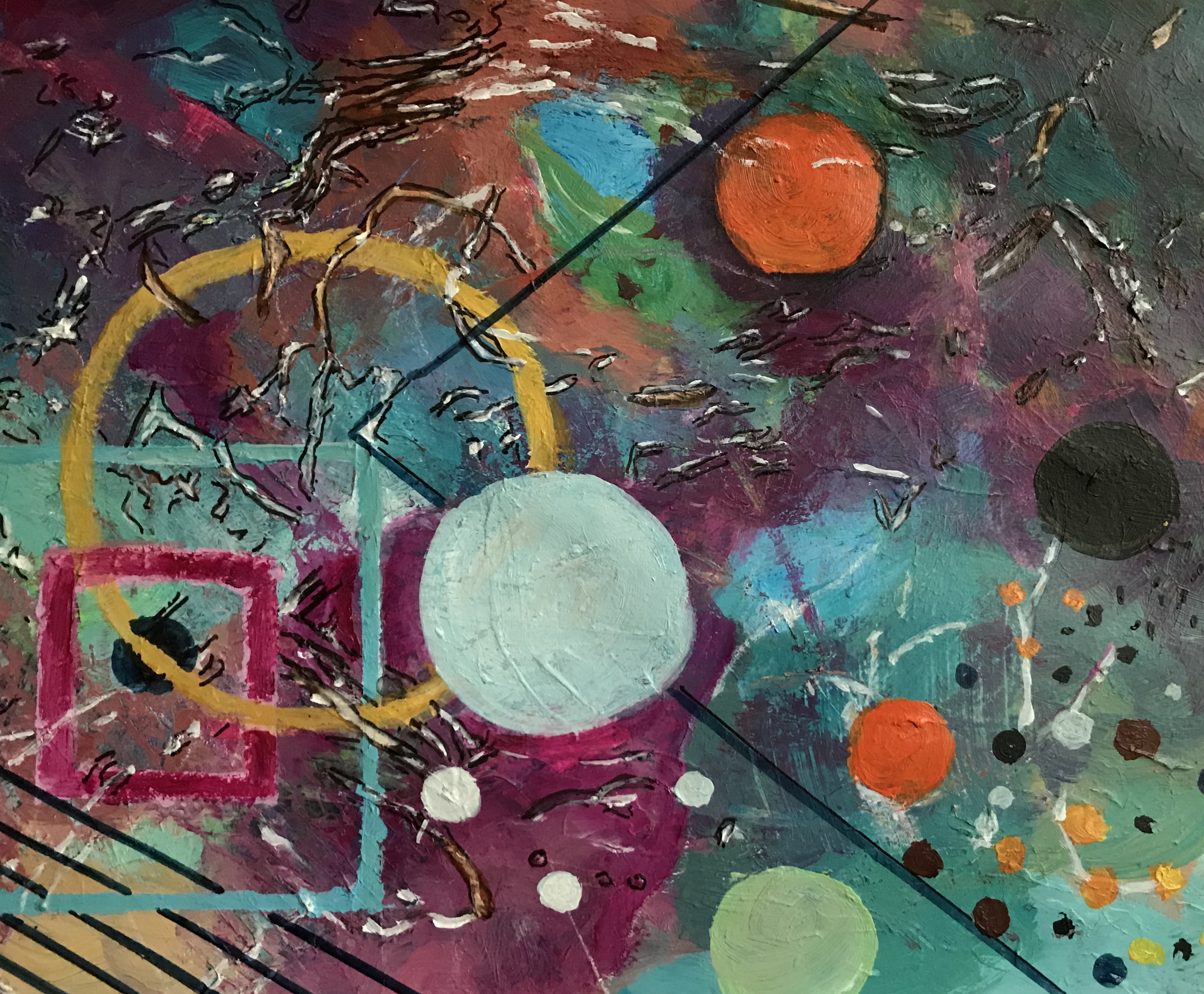 2020 Acrylique abstrait bulles sur turquoise et pourpre
