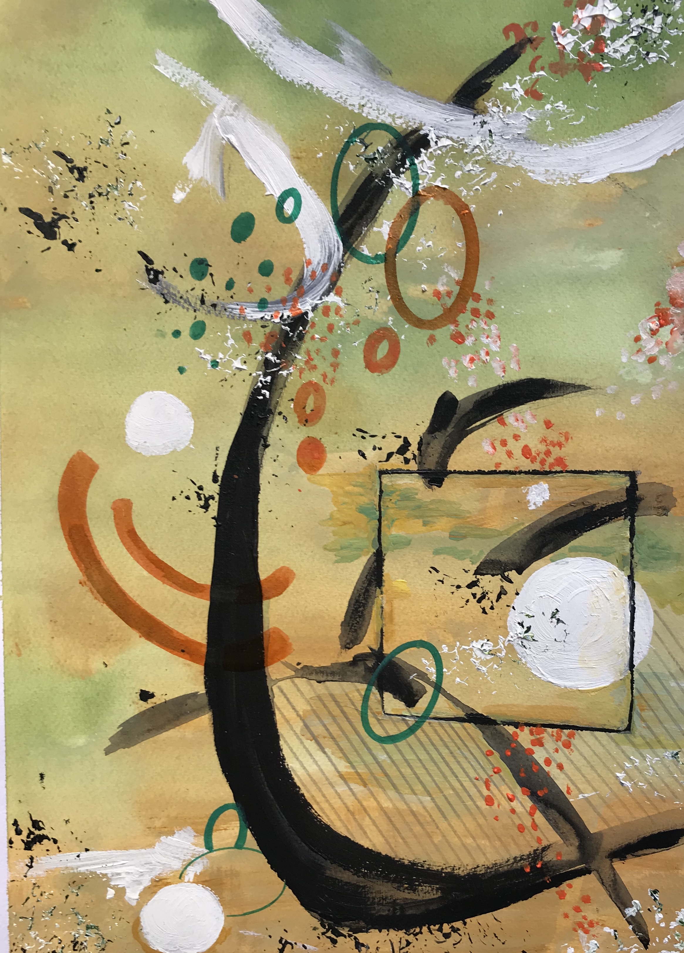 Acrylique abstrait C sur fond vert pâle