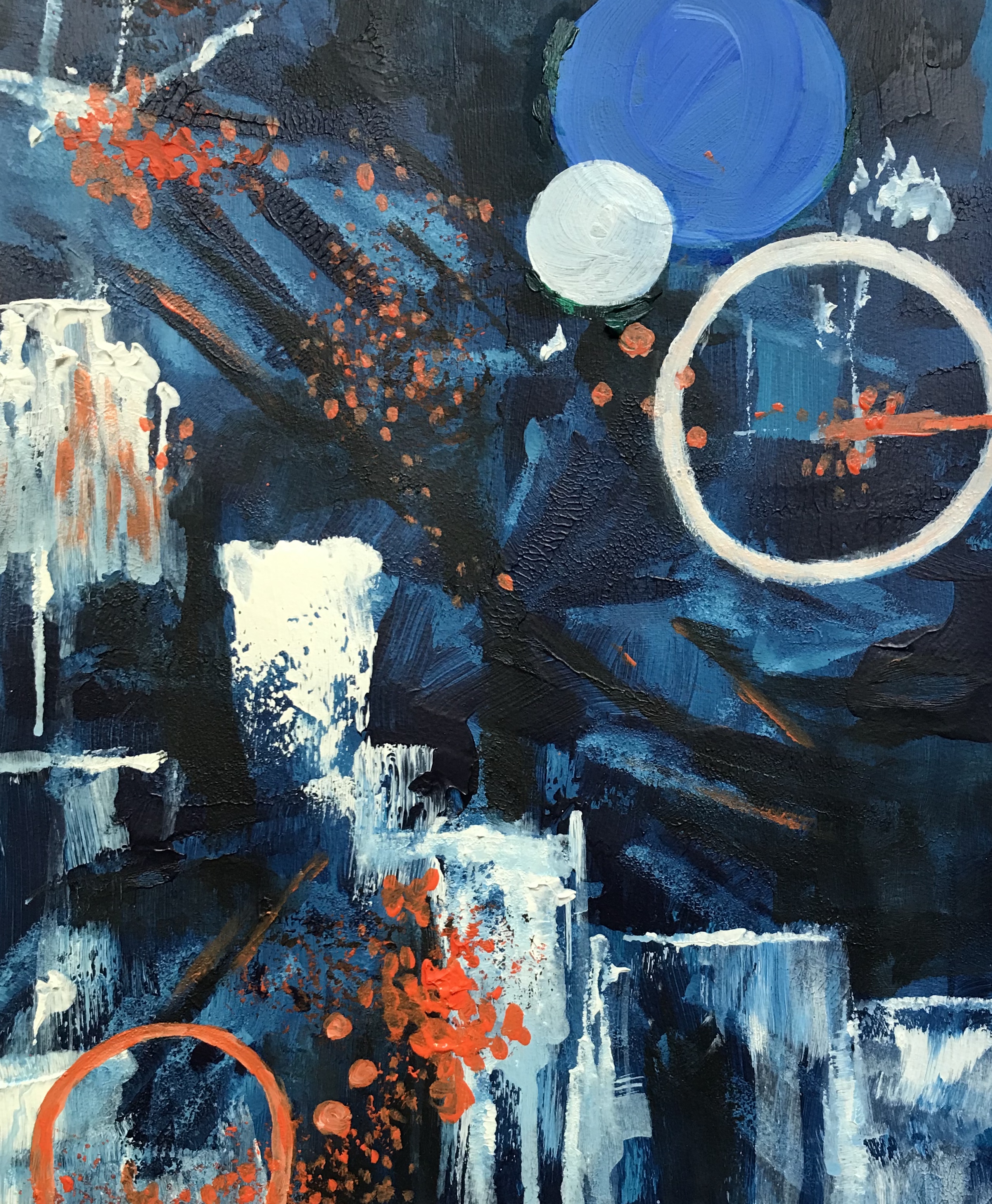 Acrylique abstrait sur fond bleu cobalt