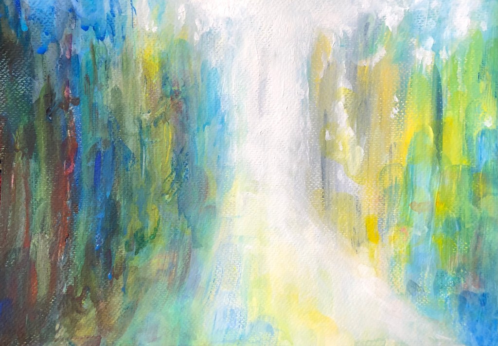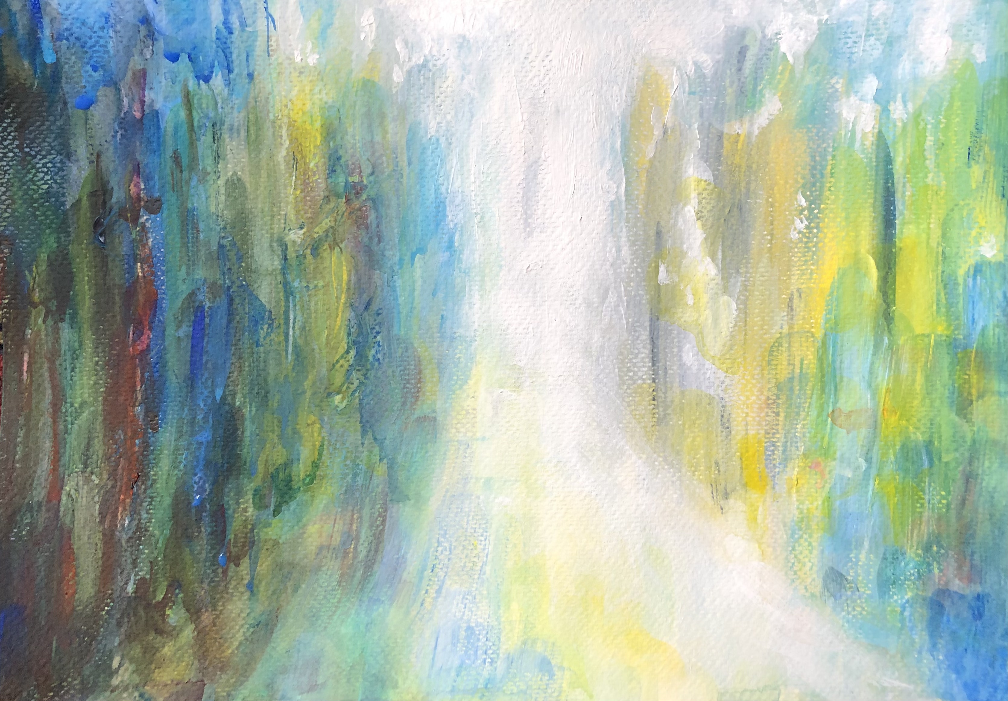 2024 – acrylique lumière et arbres bleu & jaune 21 x 30