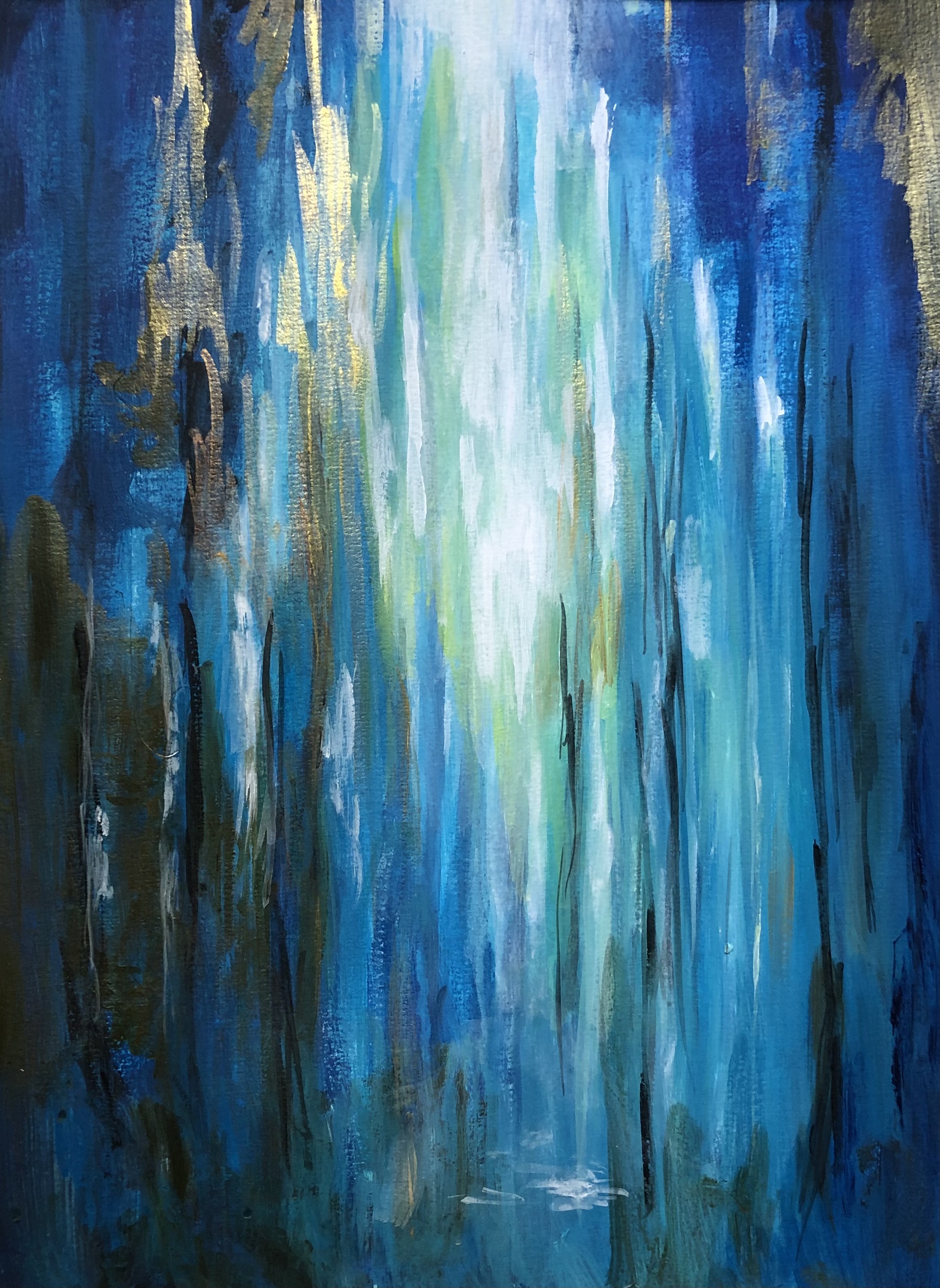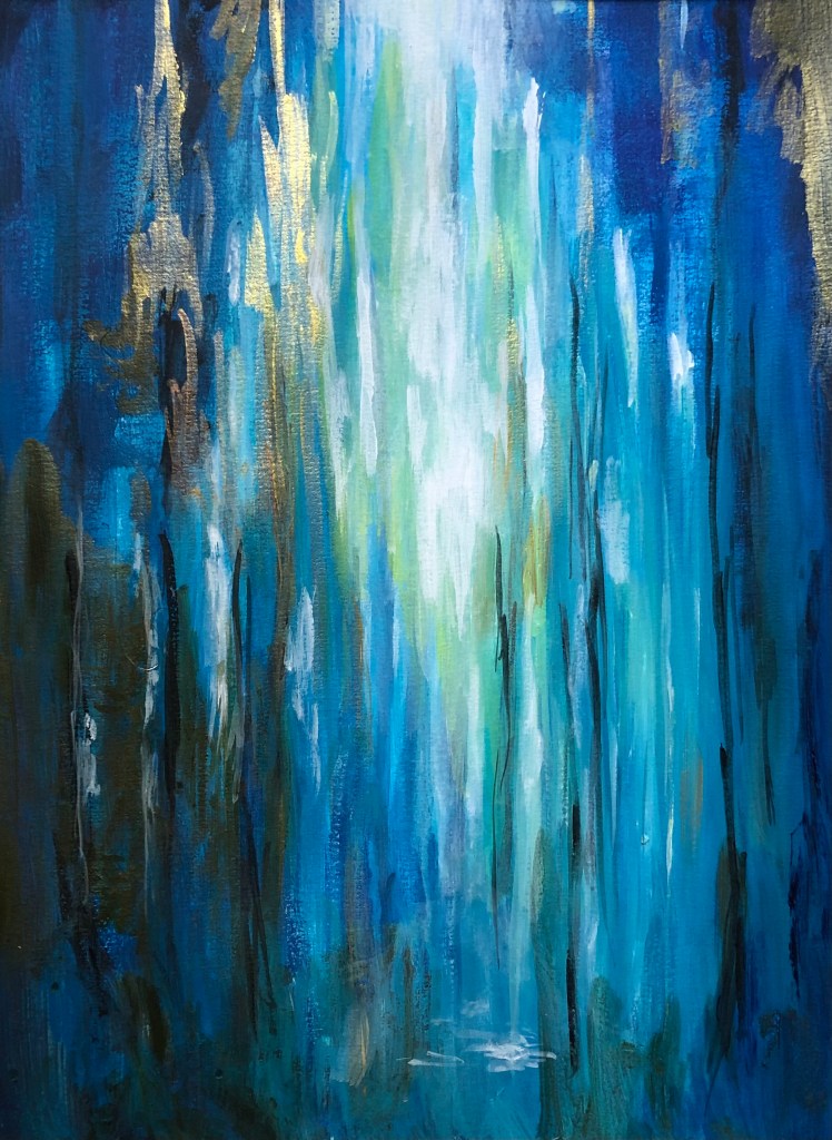 2024 – acrylique lumière et arbres bleus 42 x 30
