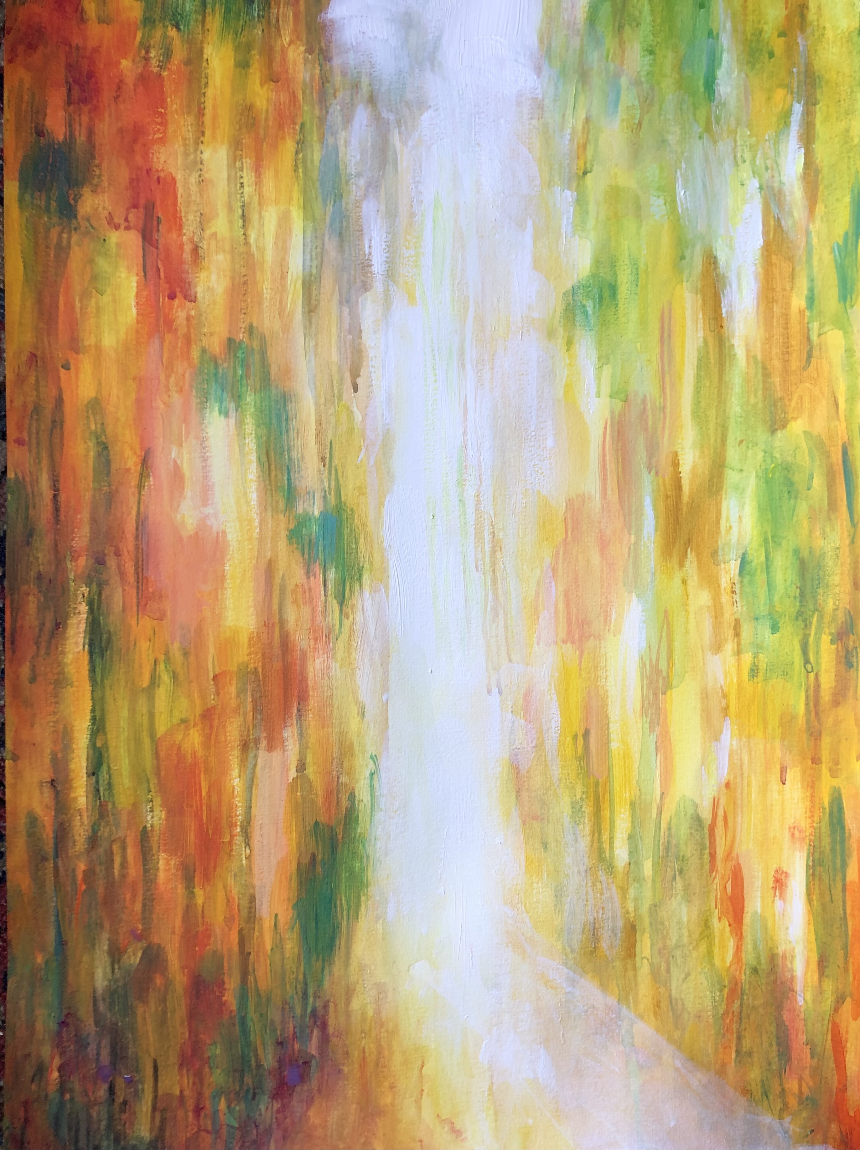 2024 – acrylique lumière et arbres couleurs feu 42 x 30