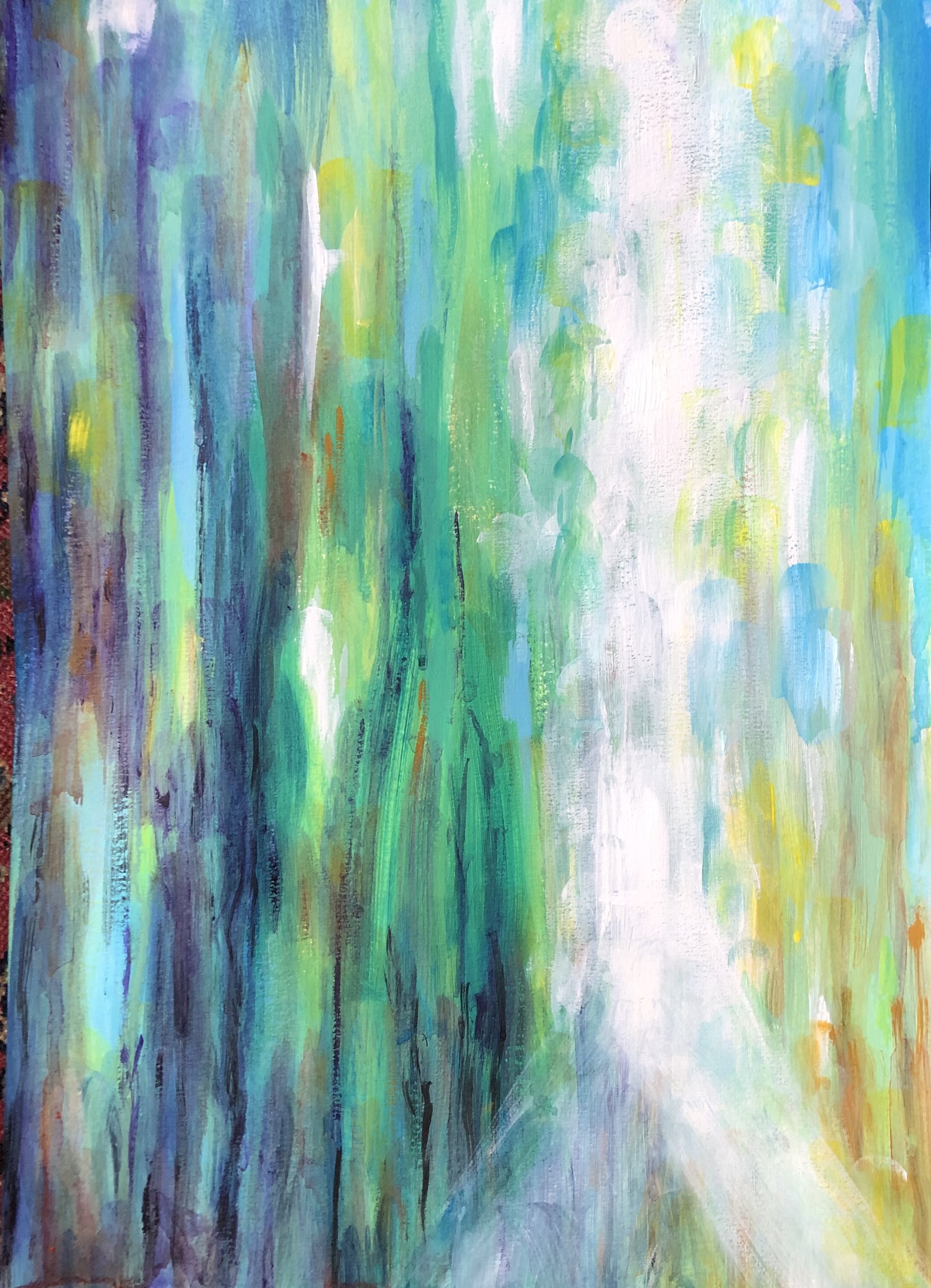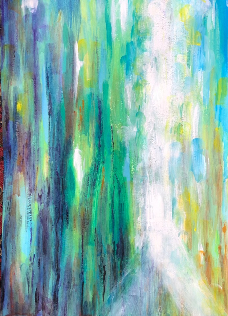 2024 – acrylique lumière et arbres turquoise 42 x 30
